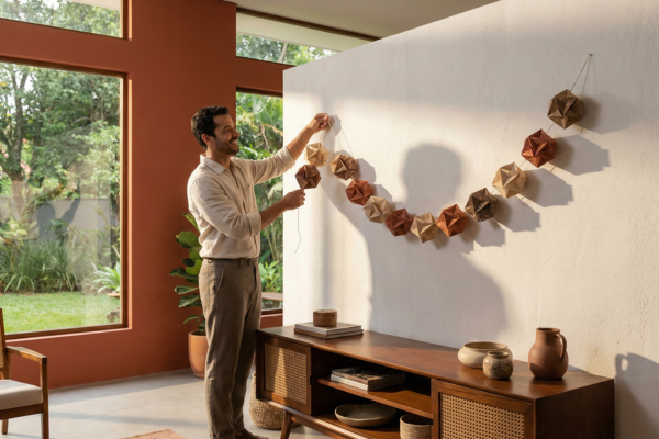 Sua Parede Vazia Ganha Vida com uma Guirlanda Geométrica de Origami
