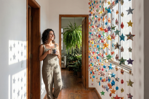 Os corredores de nossas casas são frequentemente tratados apenas como áreas de passagem rápida, espaços sem personalidade que conectam os cômodos principais sem oferecer beleza.Muitas vezes, essas áreas estreitas e longas acabam se tornando monótonas, desperdiçando um potencial incrível para criar uma experiência sensorial única para quem caminha por eles.Uma cascata de estrelas de origami …
